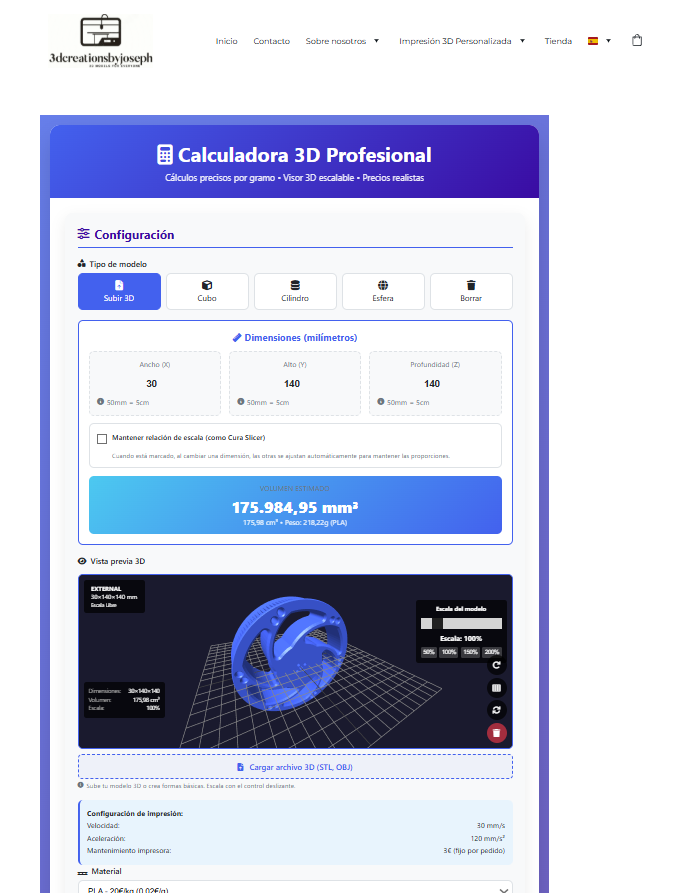 Our 3D Printing Cost Calculator allows you to upload your own 3D files (.STL, .OBJ, or .3MF) quickly and easily. You can scale your model to the exact size you need and instantly receive an approximate total cost for printing your 3D part.