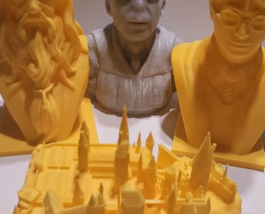 Colección de bustos de Harry Potter y castillo de Hogwarts impresos en PLA Basic Yellow y PLA Mármol de Sakata